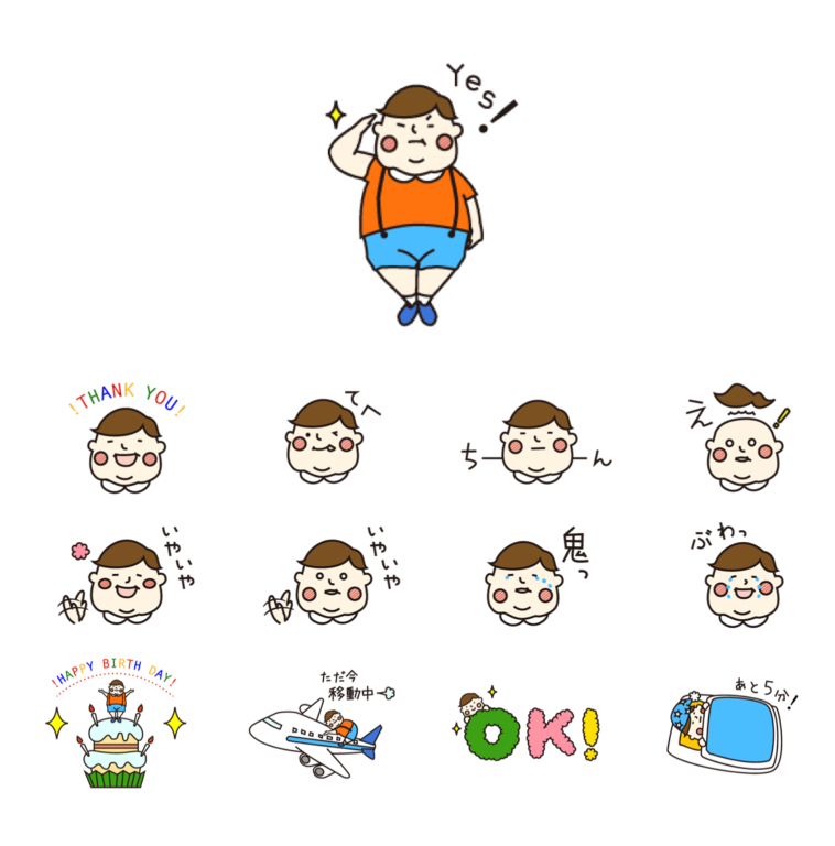 ぽっちゃり少年Bobのスタンプです。ちょっとゆるーいBobがトークをほんわか盛り上げます。